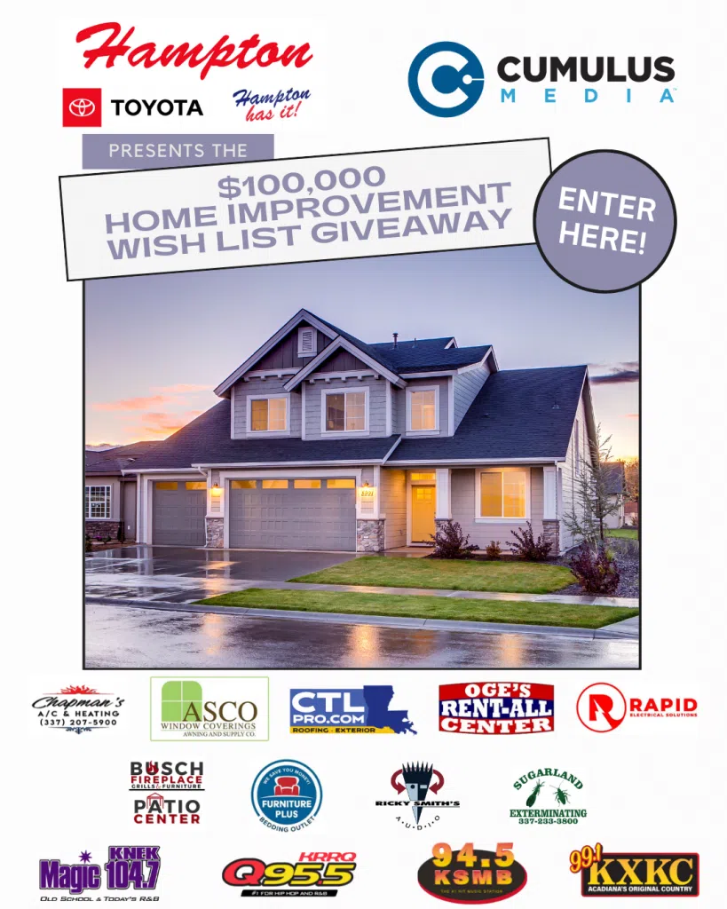 Enter to Win a $100,000 Home Improvement Wish List Giveaway Presented by Hampton Toyota