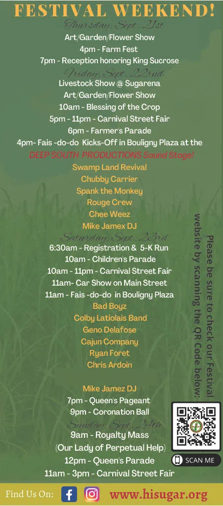 80th Annual Louisiana Sugar Cane Festival Returns to New Iberia September 21-24