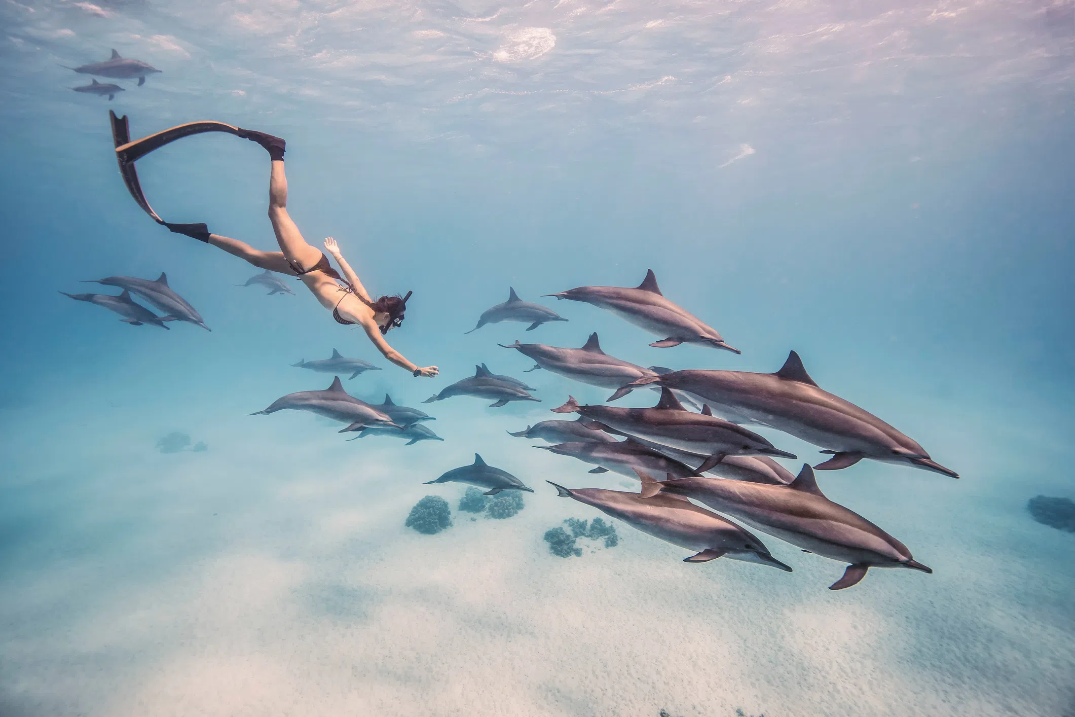 The feds are investigating a large group of swimmers accused of harassing a pod of dolphins in Hawaii … and the alleged violation is all on video.Drone footage shows a big group of snorkelers sw...